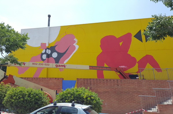 Tran del mural pintat, aquest dilluns al migdia, per Marina Capdevila: