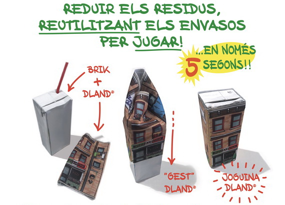 DLand és una nova idea per a reutilitzar i transformar recipients com ampolles i altres envasos, després de la seva consumició, i convertir-los en joguines.