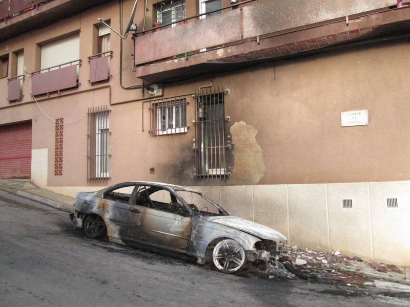 Tot i que els Bombers, Mossos d’Esquadra i Policia Local es varen desplaçar al lloc del sinistre, el cotxe va quedar totalment calcinat per la combustió de tots els elements i al migdia s’estava esperant que pogués ser enretirat del lloc, del qual els propis bombers varen provocar la caiguda del remolinat de la part inferior del balcó del primer pis, atès que hi havia perill de despreniment que podia afectar als vianants.