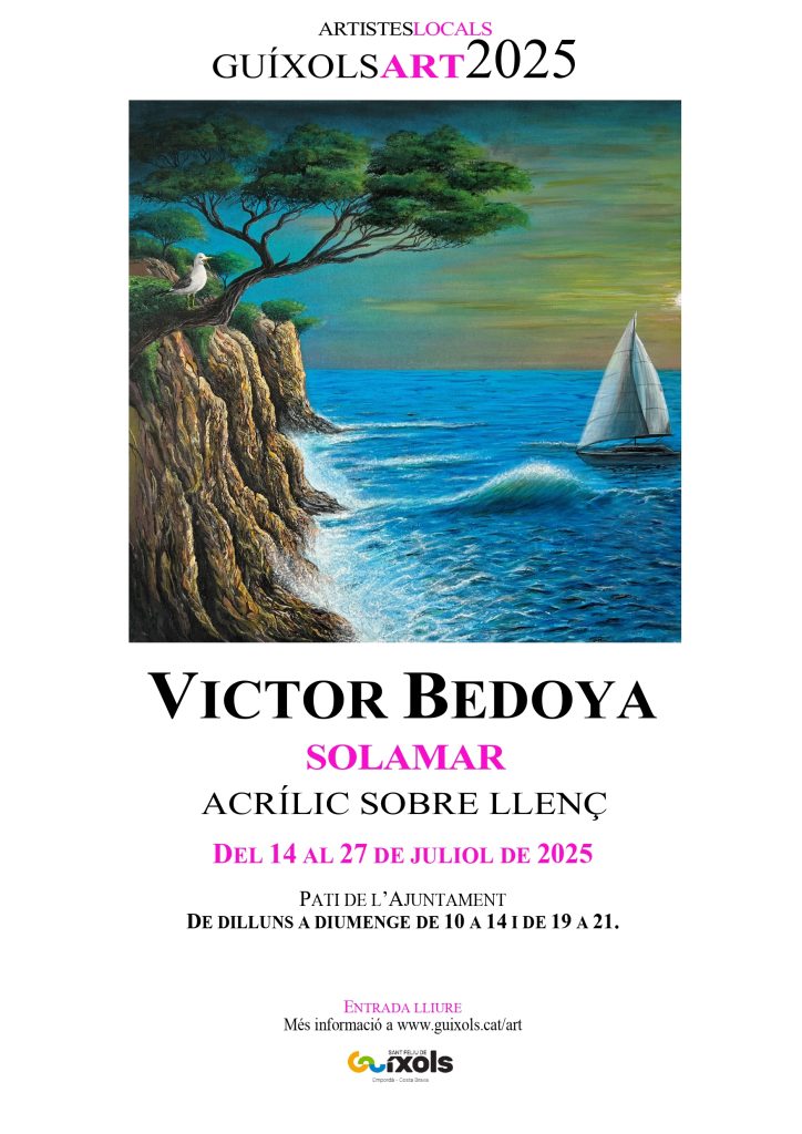 Des d’aquesta setmana, l’artista local Víctor Bedoya exposa les seves pintures al pati de l’Ajuntament de Sant Feliu de Guíxols fins el diumenge 27 de juliol.